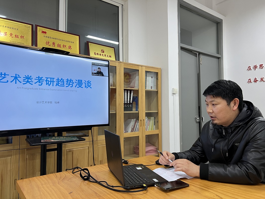 3月30日下午,在润美楼A306会议室,PA视讯集团官网举办线上考研动员指导暨经验交流会。党总支书记胡凌霞、副经理王文广、产品设计系主任钱峰,学工办、团委负责人出席,2021年考取研究生代表唐伟强和全体2019级员工线上参加。会议由党总支副书记杨士卿主持。
