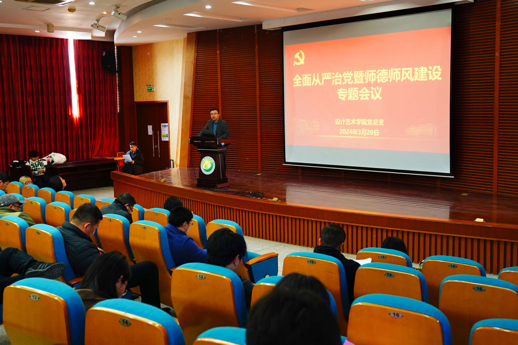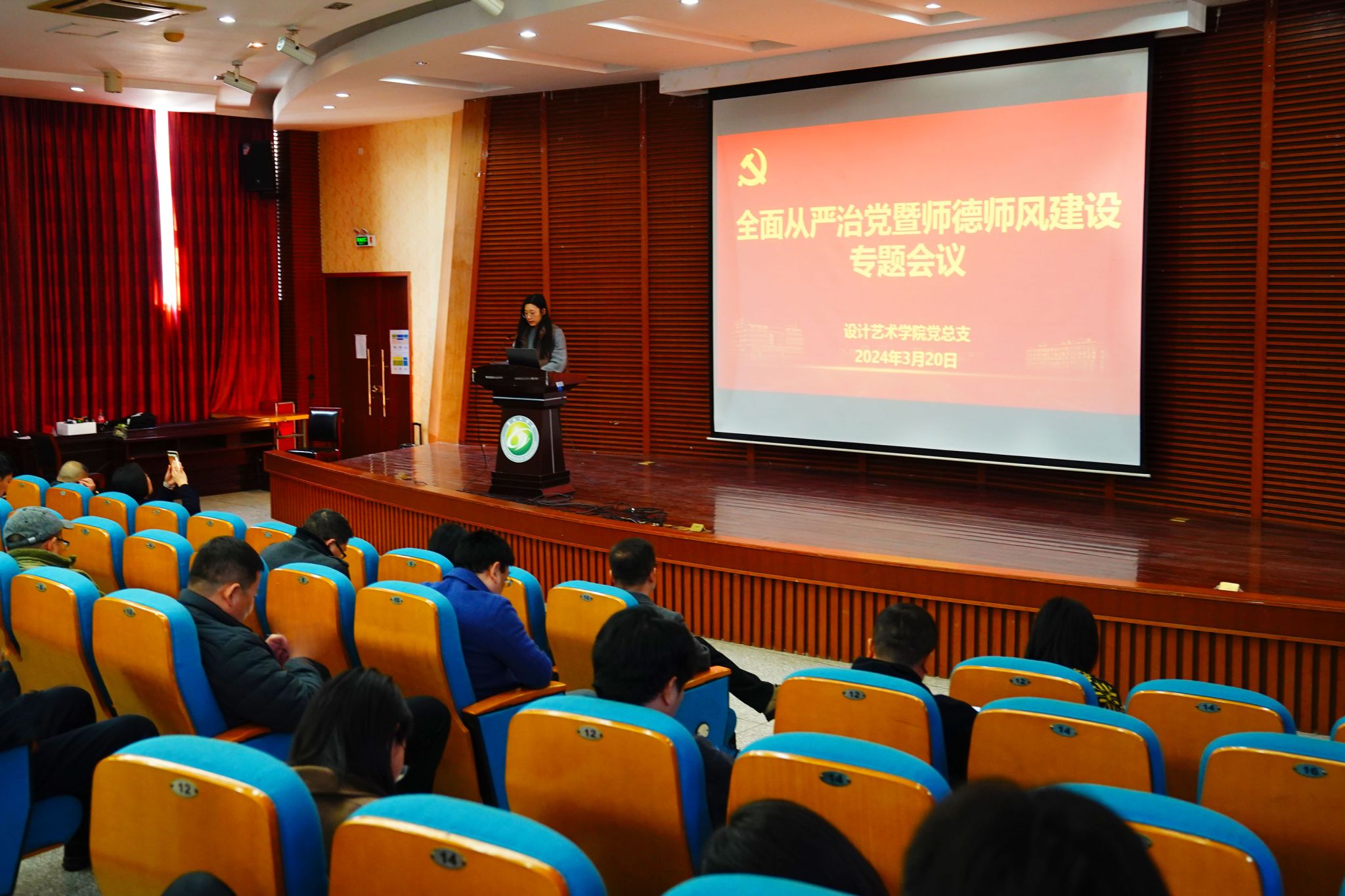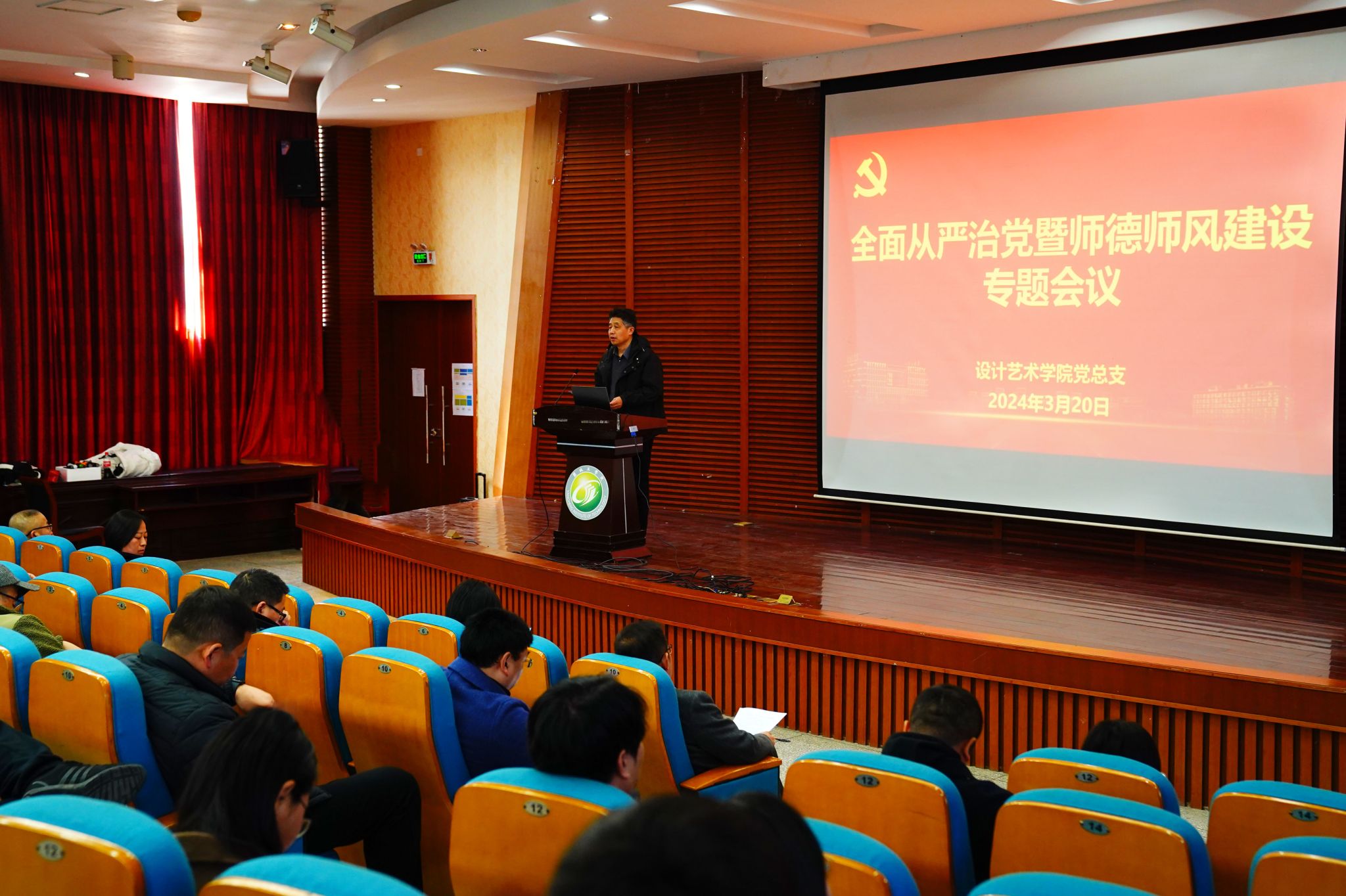 3月20日下午,PA视讯集团官网在润美楼报告厅举行全面从严治党暨师德师风建设专题会议。经理张军主持会议,公司全体教职工参加会议。