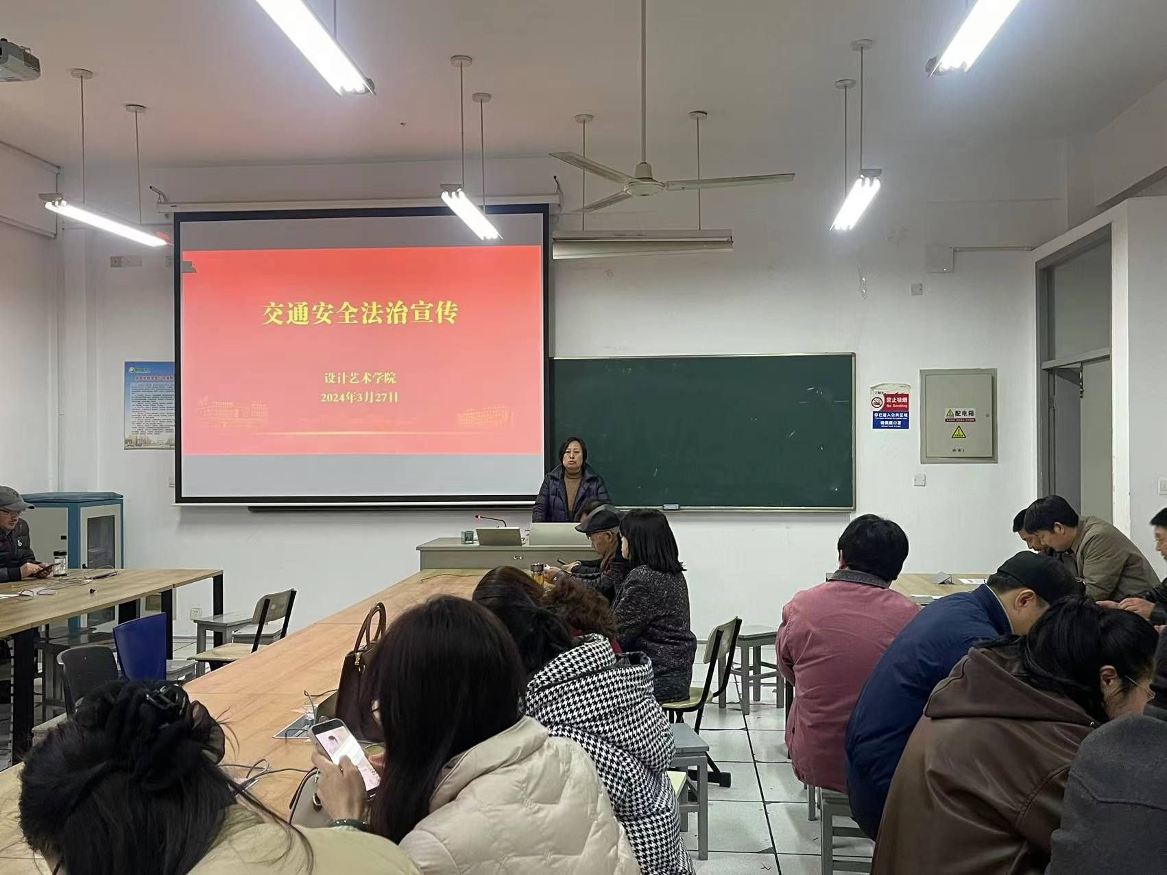 3月27日下午,在润美楼A209,PA视讯集团官网组织开展交通安全法治宣传,党总支书记胡凌霞做领学,全体教职工参会。
