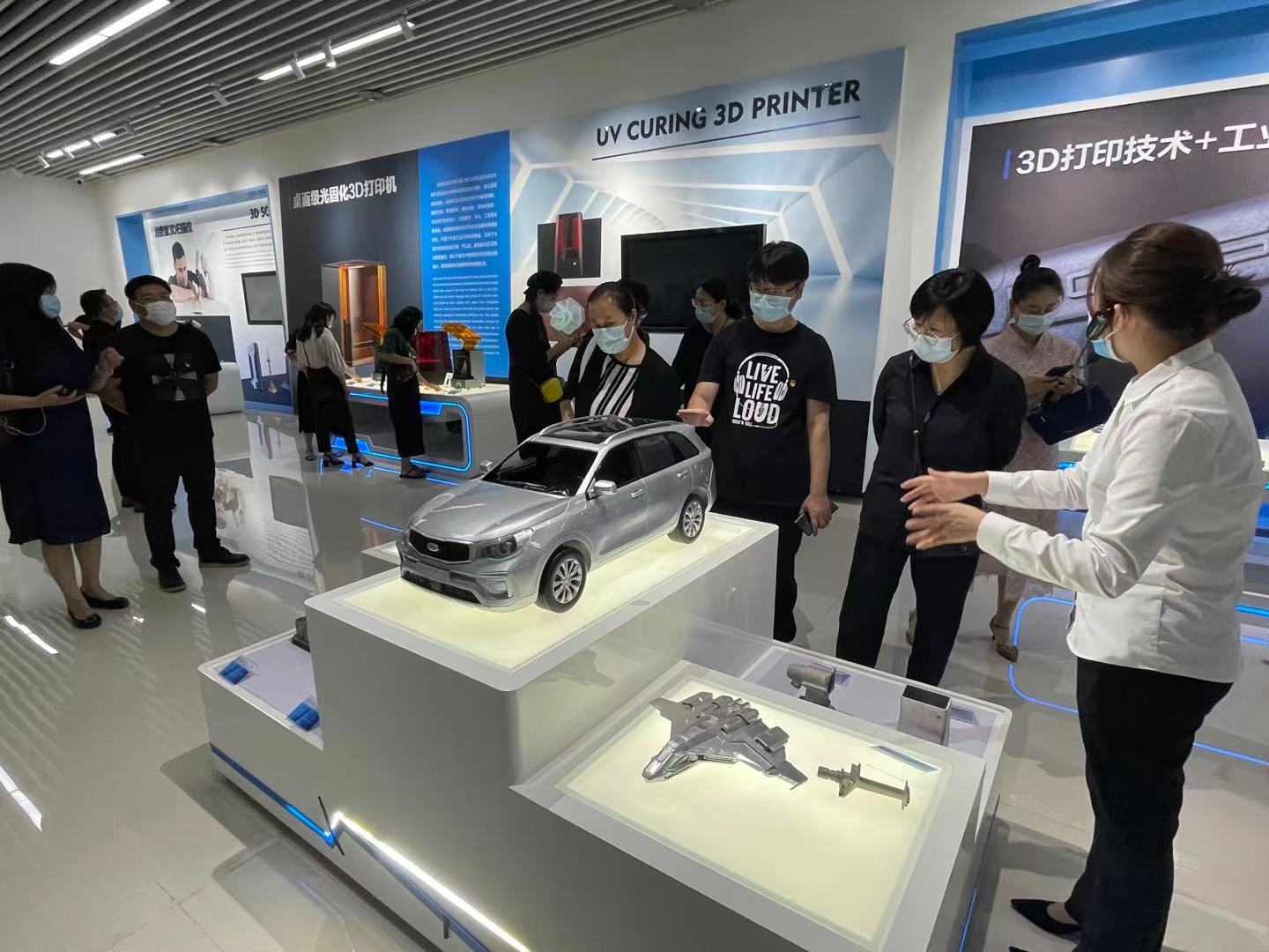 在科创园工作人员的带领下,大家参观了园区的规划展示中心、新型材料实验室、3D文创作品展示、3D打印创意体验等功能区。园区负责人王威为老师们做了3D科普知识讲座,介绍了3D打印技术的发展历程、科创园入驻3D打印企业与高校开展产学研合作取得的丰硕成果,以及3D打印技术与盐城市产业结构的结合方向等内容。公司多位博士、教授与园区的技术人员就3D打印技术、材料、艺术展示、工艺制造等方面进行了深入的探究,希望能够在专业建设、科研项目、员工培养等方面开展全方位的校企合作。