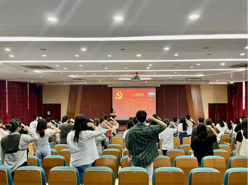 大会最后,员工党支部全体党员在组织委员叶禎菲的带领下庄严宣誓。支部书记顾清对光荣加入党组织和顺利转为正式党员的同学表示祝贺,她希望全体党员同学不忘初心,牢记使命,处处严格要求自己,在学习和生活中时刻发挥共产党员的先锋模范作用,真正做到平常时候看得出来、关键时刻站得出来、危难关头豁得出来!