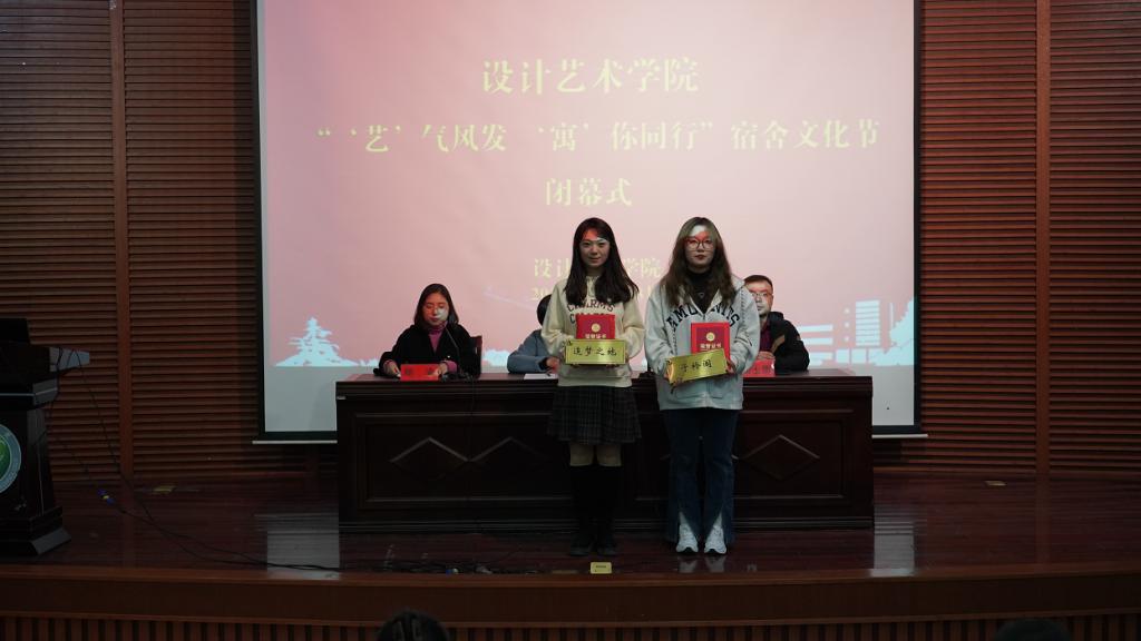 闭幕式上,顾清宣读本次宿舍文化节表彰决定,与会领导分别为荣获“党员示范寝室”、“文明宿舍”、“创意宿舍”称号的集体授牌和颁发证书。随后,4个不同年级的“创意宿舍”获奖代表分别以PPT汇报形式,借助图片、3D动画、短视频等方式,分享宿舍精彩点滴,展示宿舍创意设计成果和文化氛围。
