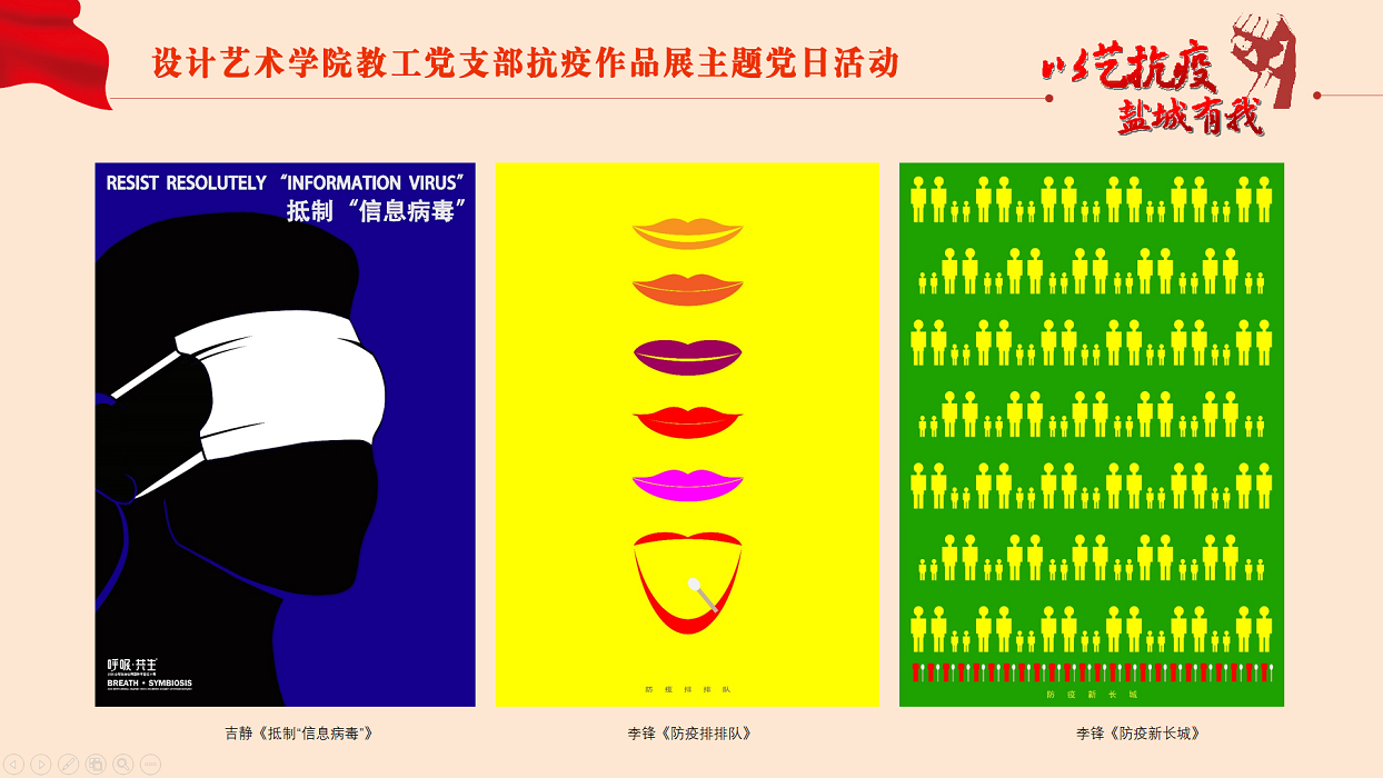 前期,PA视讯集团官网教工党支部在全体教工党员中开展了抗疫作品征集,老师们结合各自专业和特长,纷纷创作了书法、绘画、海报、诗歌等作品,共征集作品30余件。在线上展示活动中,老师们围绕自己作品创作的思路进行了说明,大家用一件件作品展示、宣传了疫情防控政策,同时也讴歌赞美了战斗在防疫一线的医务工作者、志愿者和工作人员,为抗疫工作凝聚团结一心的精神防线。