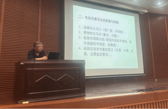 最后,写生课程指导教师、公司关工委成员杨建生教授为参会员工做风景写生技法讲座。
