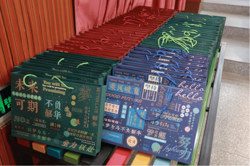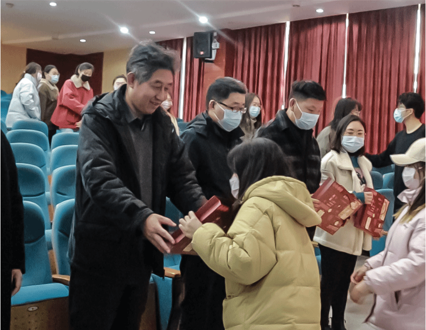 会上,在场师生一起观看了考研祝福视频。视频中不仅有学弟学妹们的真挚寄语和制作祝福贺卡的点滴过程,还有考研学子备考期间的心得分享与守望相助。最后,与会领导和老师一起为考研员工发放了慰问福袋和祝福贺卡,表达了公司老师对学子们的真切关爱和殷切期盼。同学们对公司领导老师的关心表达了感谢之情,并表示将迎难而上,脚踏实地,全力以赴,为公司争光添彩。