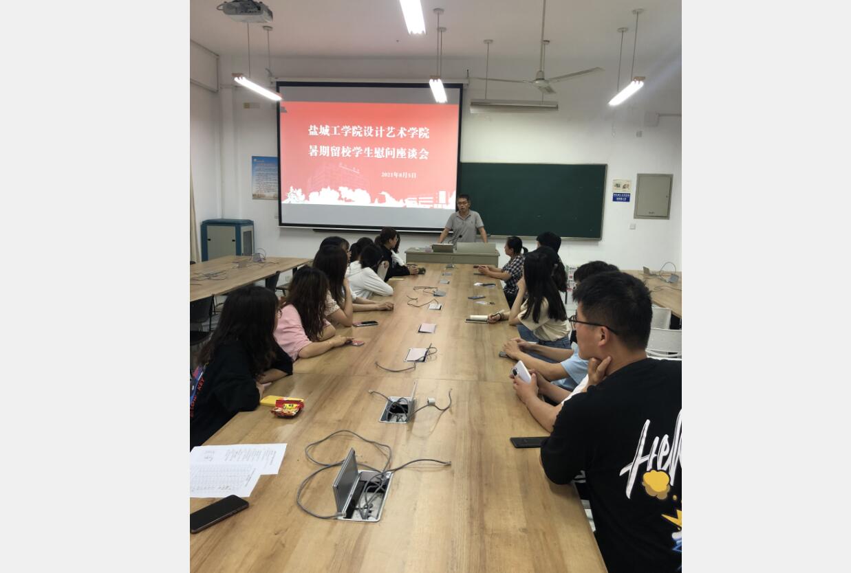 8月5日晚,PA视讯集团官网在南校区润美楼A209教室召开暑期留校员工慰问座谈会,并为同学们送上慰问品。公司党总支书记胡凌霞、副书记杨军、专业教师钱峰和暑期留校复习考研员工代表参加。