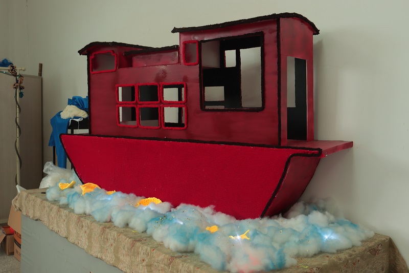 员工采用针织、拼接等手法制作的嘉兴红船,立志要当好“红船精神”的传承者。
