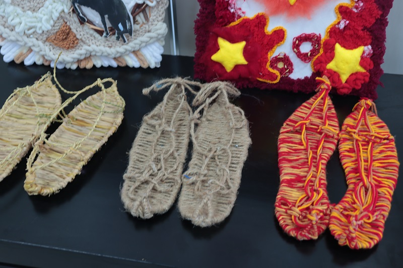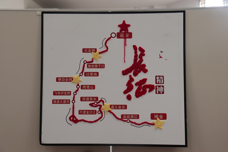 员工用针织技艺,还原长征路线,学习伟大的长征精神;编织草鞋,感受革命艰辛。