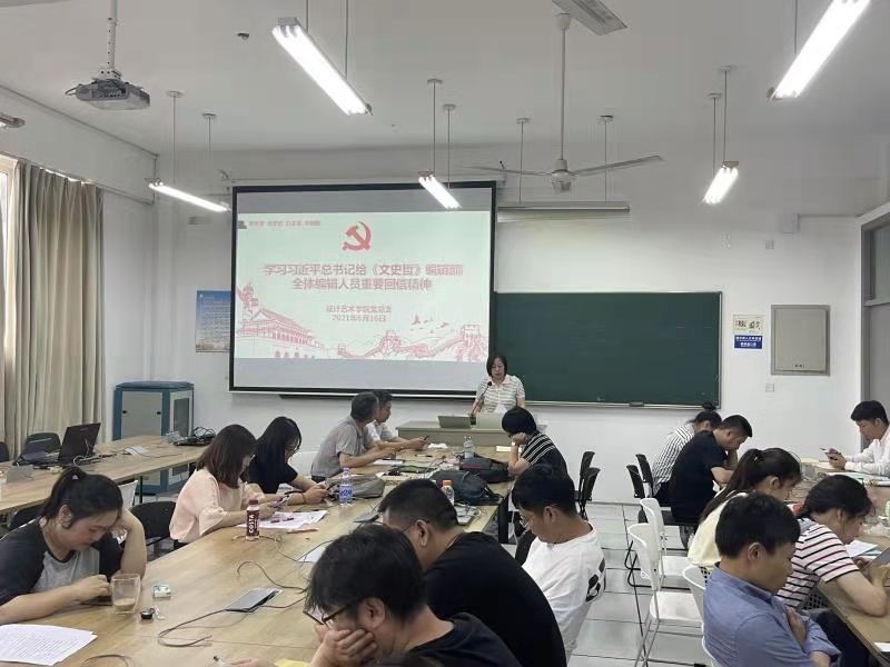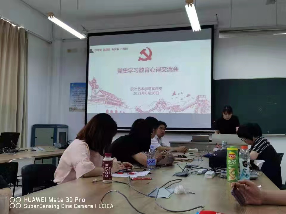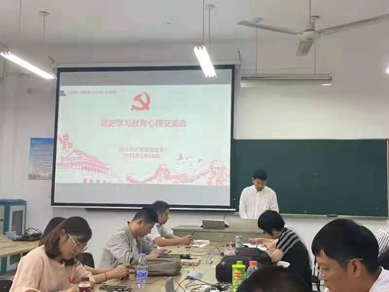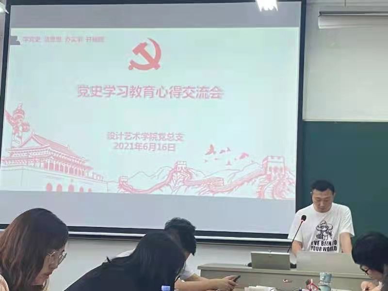 钱峰、谭大青、陈昊、葛平等四位老师分别分享了自己参加党史学习教育的心得体会。钱峰结合学习《习近平新时代中国特色社会主义思想学习问答》一书,畅谈了他对于百年未有之大变局背景下,新时代设计专业如何创新发展的理解。谭大青表示,通过学习党史,自己更加明确作为基层党员,要始终牢记入党之初的信念和使命,作为高校教师,要将立德树人作为自己的根本任务。陈昊将党史学习与专业学习相结合,表示要积极响应习近平总书记在清华大学考察时的重要讲话精神,以美增韵、以美为媒、以美担当,把自己的学识才干应用到人才培养和经济社会发展中去。葛平指出,透过党史这面镜子,照出我们自身的缺点和不足,也为我们提供了宝贵的营养,让我们能够汲取力量启迪未来。