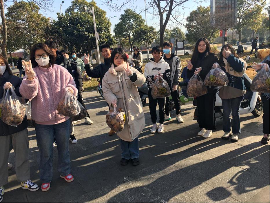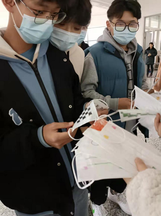 B产品201员工为校园行人免费发送自己设计制作的口罩