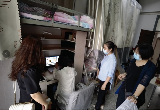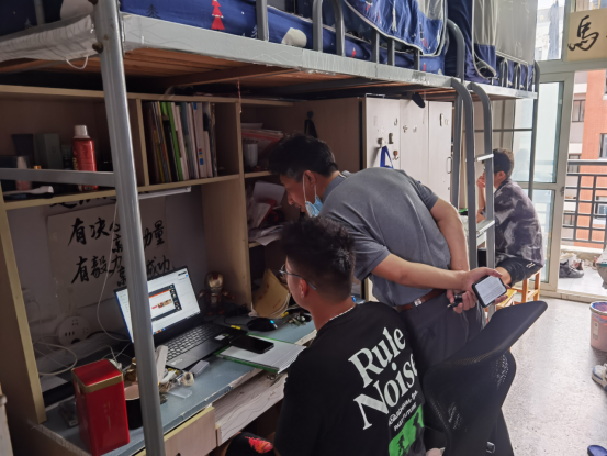 8月29日是新学期开学第一天,为确保公司各项教学工作有序开展,上午7:40公司领导、教学工作委员会、员工工作办公室相关人员深入员工宿舍,检查开学第一天线上教学开展情况。