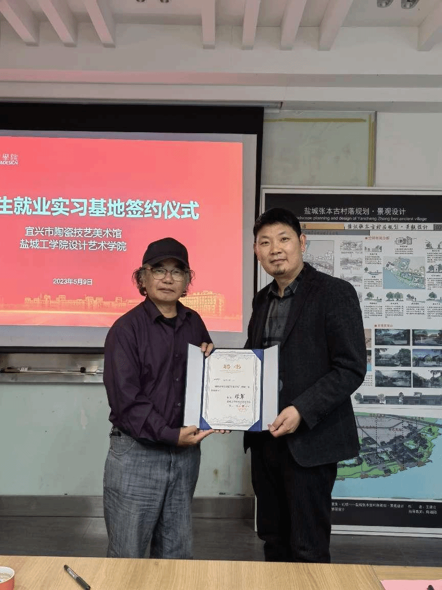 会后,钱峰主任代表公司与宜兴陶瓷技艺美术馆签订了老员工就业实习基地共建协议,并聘请杨联伟老师为行业导师。这也是公司继续扎实开展访企拓岗促就业攻坚行动,全力促进毕业生更加充分更高质量就业的又一举措。