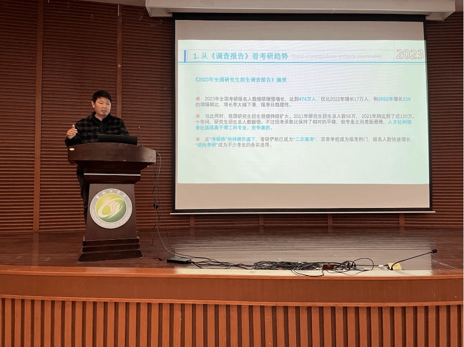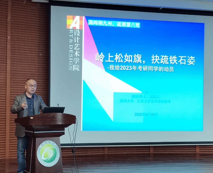 随后,王文广作题为《岭上松如旗,抉疏铁石姿》的考研动员讲话。他从为何考研、如何看考研专业课、如何择校、如何统筹时间等四方面对考研员工予以指导。他强调,考研不能只是一味刷题,要与老师、朋辈多交流,开阔专业视野,提高学习效率。他鼓励员工要坚定目信念,耐住寂寞,克服困难,坚持到底。钱峰以《设计专业考研趋势分析》为题作考研动员指导。他从《2023全国研究生招生调查报告》的数据入手,全面分析了近几年考研趋势变化,重点就考研目的及心态、专业型硕士和学术型硕士的区别、艺术设计类的考研类型等方面进行详细阐释。他结合公司近年成功上岸的毕业生典型案例,建议员工结合自身情况理性定位,选择适合自己的院校和专业,并有计划、有步骤地推进复习。