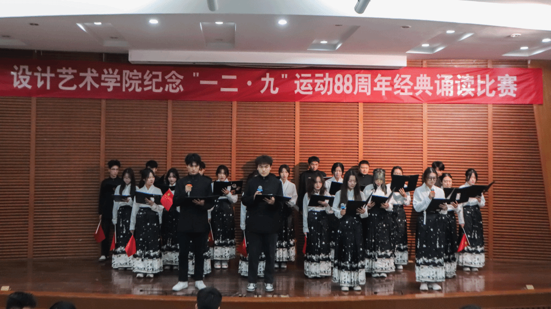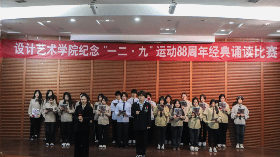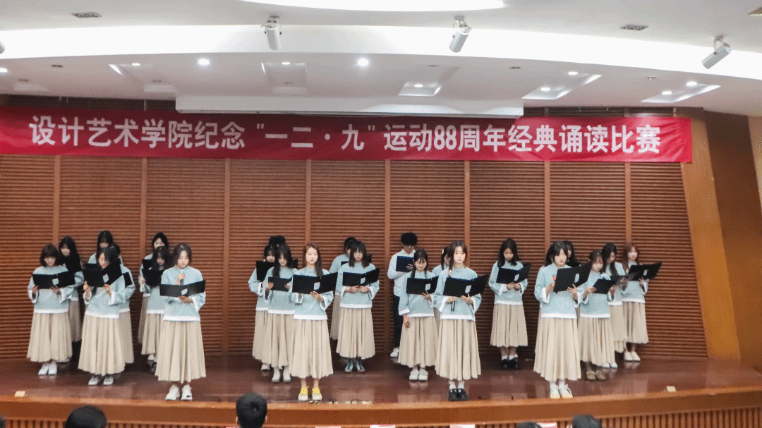活动中,朗读者们以丰富的情感、铿锵的话语,诵读了《不朽中国魂》《那些青春,从未被忘却》《历史的回音,青春的誓言》《忆一二·九 ,树爱国心》等爱国主义诗篇,致敬88年前先辈的热血奉献,抒发对祖国的深深热爱,感染了在场的每一位观众。经过激烈角逐,B环艺232班荣获一等奖,B产品231、B服装232班荣获二等奖,B产品232、B服装231、B视传232荣获三等奖,其他班级荣获优秀奖。