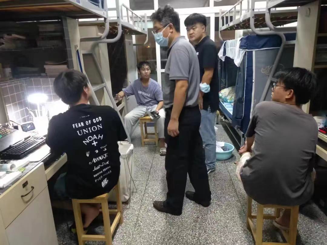 9月3日晚,公司党政领导带领全体政工人员深入新生宿舍,走进寝室听“心声”。公司党总支书记胡凌霞,经理张军,党总支副书记杨士卿带队,全体专兼职辅导员参加。走访过程中,院领导们与新生亲切交谈,询问并解答他们在报到过程中遇到的困难和疑惑,叮嘱他们要提高安全防范意识,刻苦学习、主动求知,以实际行动报效祖国。