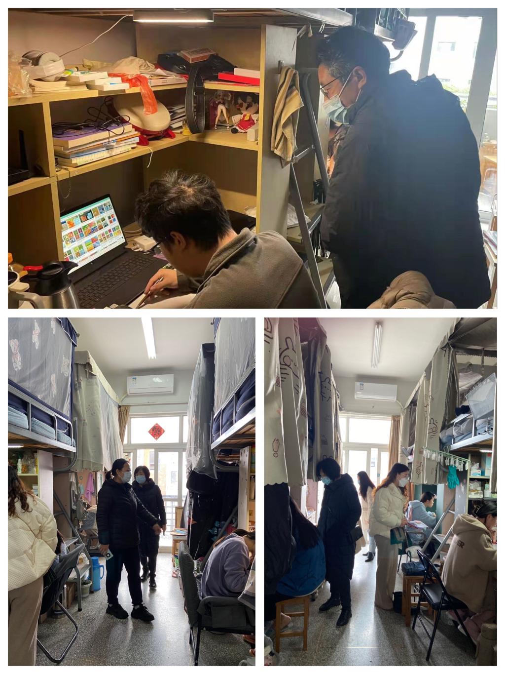 检查期间,张军与同学们亲切交流,详细询问了同学们线上学习状况及存在的困难,强调要尽快转变学习方法以适应网络课堂,努力提高线上学习效率,如遇到自己无法解决的困难,及时与任课老师沟通协助解决。胡凌霞叮嘱同学们要严格遵守公司疫情防控管理的相关规定,切实做好自我管理、自我约束、自我防护,养成良好的卫生习惯,提醒同学们每日按时完成健康日报系统打卡,及时关注班级群消息,积极配合公司完成各项防疫工作。