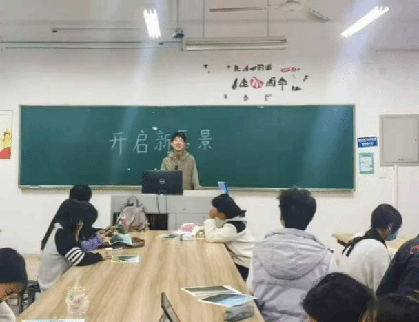 活动伊始,互动活动“大风吹”迅速点燃了现场的气氛。同学们在轻松愉快的氛围中积极参与游戏活动,陌生感渐渐消融,欢声笑语此起彼伏。这一热身环节成功调动了气氛,为后续的活动打下了良好的基础。互动游戏过后,同学们进行了分组讨论,组员之间互相介绍自己并推选出组长,完成一起起组名、制定团体规范等既定任务,并作出做出“遵守团体规则”的庄严承诺。在老师的指导下,各位同学在以小组为单位,画出了自己的大学愿景图,组成一棵棵大学愿景树,创作出了一幅幅充满创意和想象力的作品,表达自己对未来的期望。