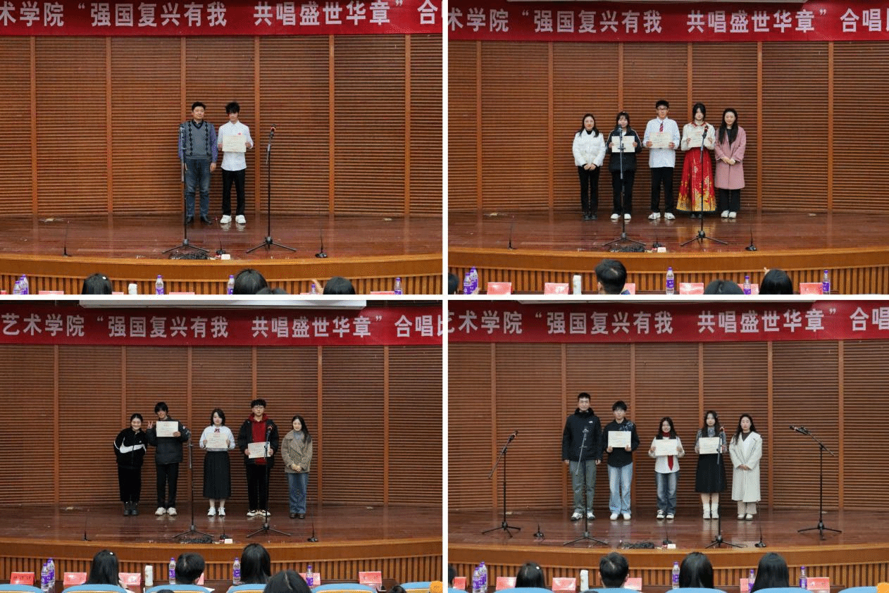 评委老师对各参赛队伍合唱团进行点评。从演唱技巧、音准节奏、情感表达、团队协作以及舞台表现等多个维度进行综合评审。经过评委们的严格评审,最终B视传242获一等奖,B环艺241、B环艺242、 B视传241获二等奖,B服装241、B产品242、D视传241获三等奖, D环艺241 、B服装242、 B产品241获优秀奖。