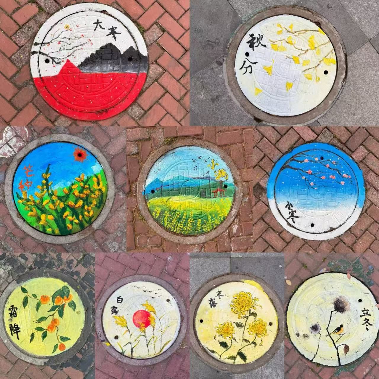 4月26日上午,公司将劳动教育与美育相结合,充分发挥专业特长,组织25名员工志愿者,开展“‘井’上添‘画’,落地生‘花’”校园井盖美化活动。活动以二十四节气为主题,将校园井盖变身“文化画布”,用创意与色彩装点校园,传递传统文化之美。参与的同学历经清理井盖、构图打稿、调色绘制等多道工序,以二十四节气为创作主线,将春生、夏长、秋收、冬藏的时序之美融入井盖设计。立春的嫩芽与纸鸢、清明的细雨、芒种的麦浪、冬至的饺子,一个个节气通过同学们的手绘跃然于井盖之上,展现自然韵律,让冰冷的井盖“活”起来,成为校园里的文化名片,同学们也在活动中提升了专业能力,体会到劳动的价值与合作的乐趣。