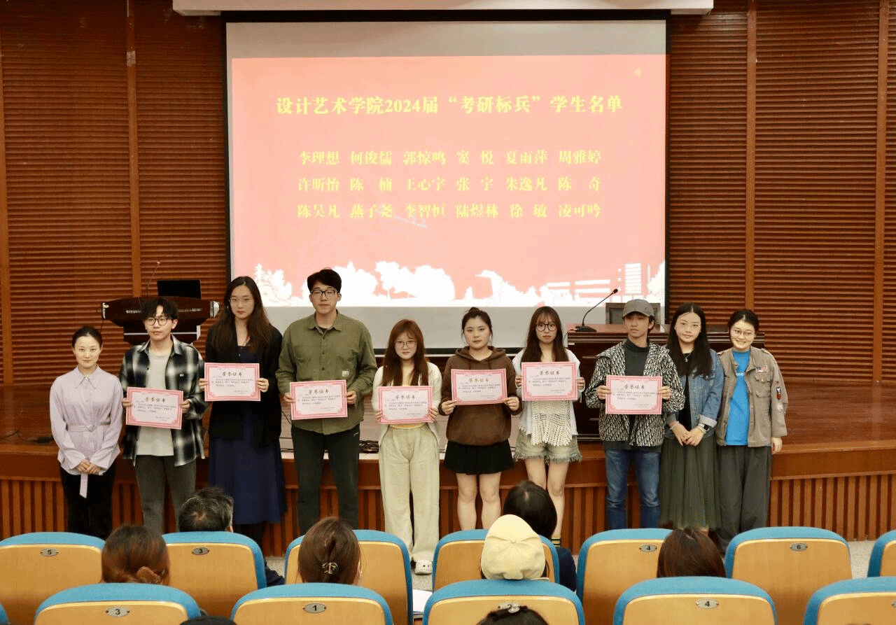 叶禎菲宣读《PA视讯集团官网关于表彰2024年考研优秀员工的决定》,并介绍公司出国留学硕士项目相关政策。与会领导和老师为考取研究生员工颁发“考研标兵”荣誉证书。考取研究生毕业生代表D环艺191班邹楚江、B视传201班郭惊鸣、B服装202班燕子尧依次分享各自的备考经验和收获感悟。21级考研员工代表B产品212班刘政楠作表态发言。