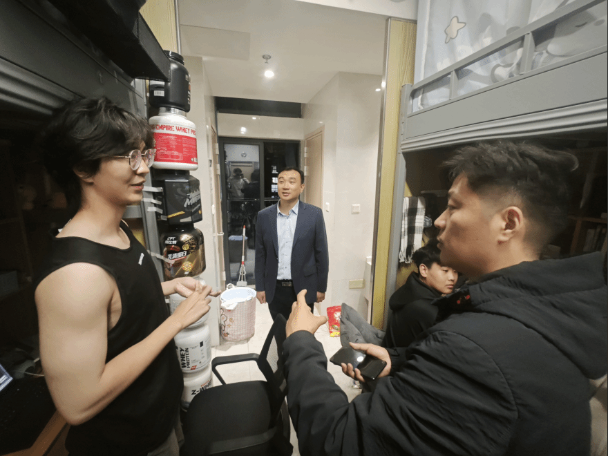 走访过程中,张军、刘荣与同学们亲切交谈,询问他们的学习和生活情况,对发现的安全隐患、卫生等问题提出了整改意见,提醒员工要严格遵守校级校规和宿舍管理规定,注意宿舍用电安全,维护宿舍卫生,共同营造一个安全、舒适的学习生活环境。