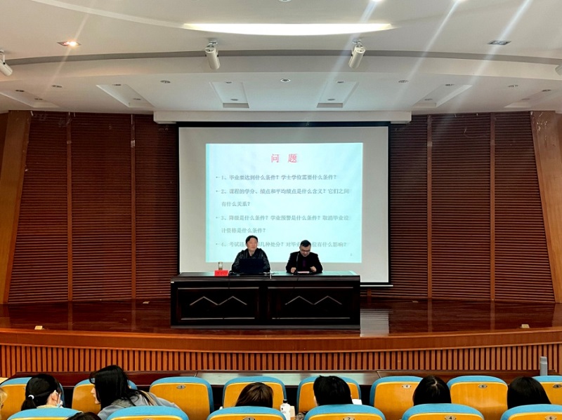 李爱国作学籍管理专题讲座。他从常见的四种学业问题入手,分别介绍了学籍管理规定、课程学习和选课注意事项、学士学位授予办法、学业预警管理办法、考试违规处理办法,重点解读了毕业与学位授予的基本条件,课程学分、绩点和平均分的含义与关系,降级、学业预警和考试违规处理等制度规定。他强调,学籍是员工的身份证明,关系到每个同学的切身利益,希望广大新生合理规划大学目标,顺利完成学业,度过一个精彩而难忘的大学!