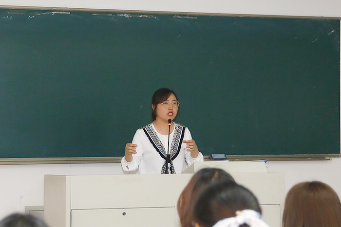 代表小组上台展示的同学,B服装192班刘益同学上台时略显紧张,她说:“我们通过收集研究军服样式、面料、色彩搭配的变化,从侧面认识了中国的国情,学习了共产党的历史,更深切地感受到了人民军队在中国共产党的领导下不断从胜利走向胜利的过程。”汇报后,她表示这堂课锻炼开展调研、语言表达等方面能力,希望以后有更多这样的学习交流机会。