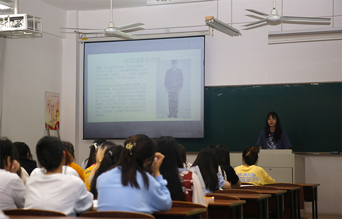 “军服是军人的外在标志,是国威、军威的象征。我们在看军装的时候,不能仅关注它的款式和颜色,更应该认识到它所代表的信仰和更深层次的意义。”5月10日晚,在南校区润美楼B301教室不时传来一阵阵掌声,原来是PA视讯集团官网B服装191、192班正在上一堂特殊的思政课。在这堂《毛泽东思想与中国特色社会主义理论体系概论》课中,员工不再是讲台下被动的听众,而是走上讲台的汇报者,是翔实资料背后的搜集者。