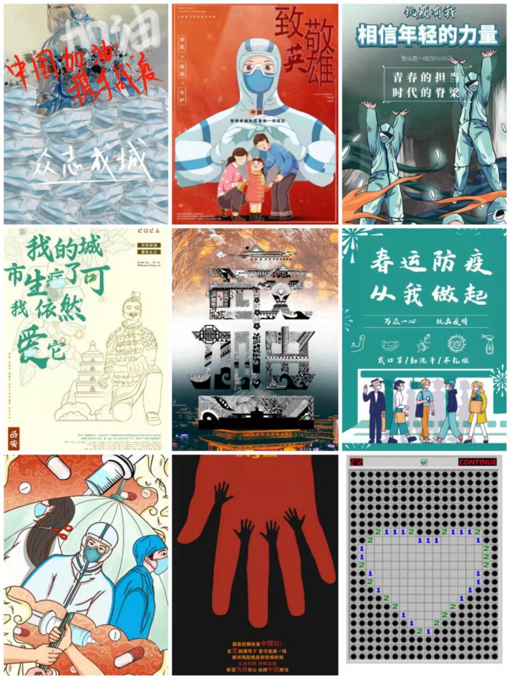 寒假期间,新冠疫情在多地爆发,设艺公司号召学子们发挥所学所长,为疫区绘制和设计海报,通过自己的方式为西安、天津等地加油,得到了同学们的积极响应。本次活动共征集30余幅海报作品,题材涉及加油助力、防疫措施、倡导健康生活等方方面面,设艺学子们用自己的方式为这场没有硝烟的战“疫”贡献着一份力量,充分表达了“同心战疫”的主题,宣传了正能量,传递了爱心。