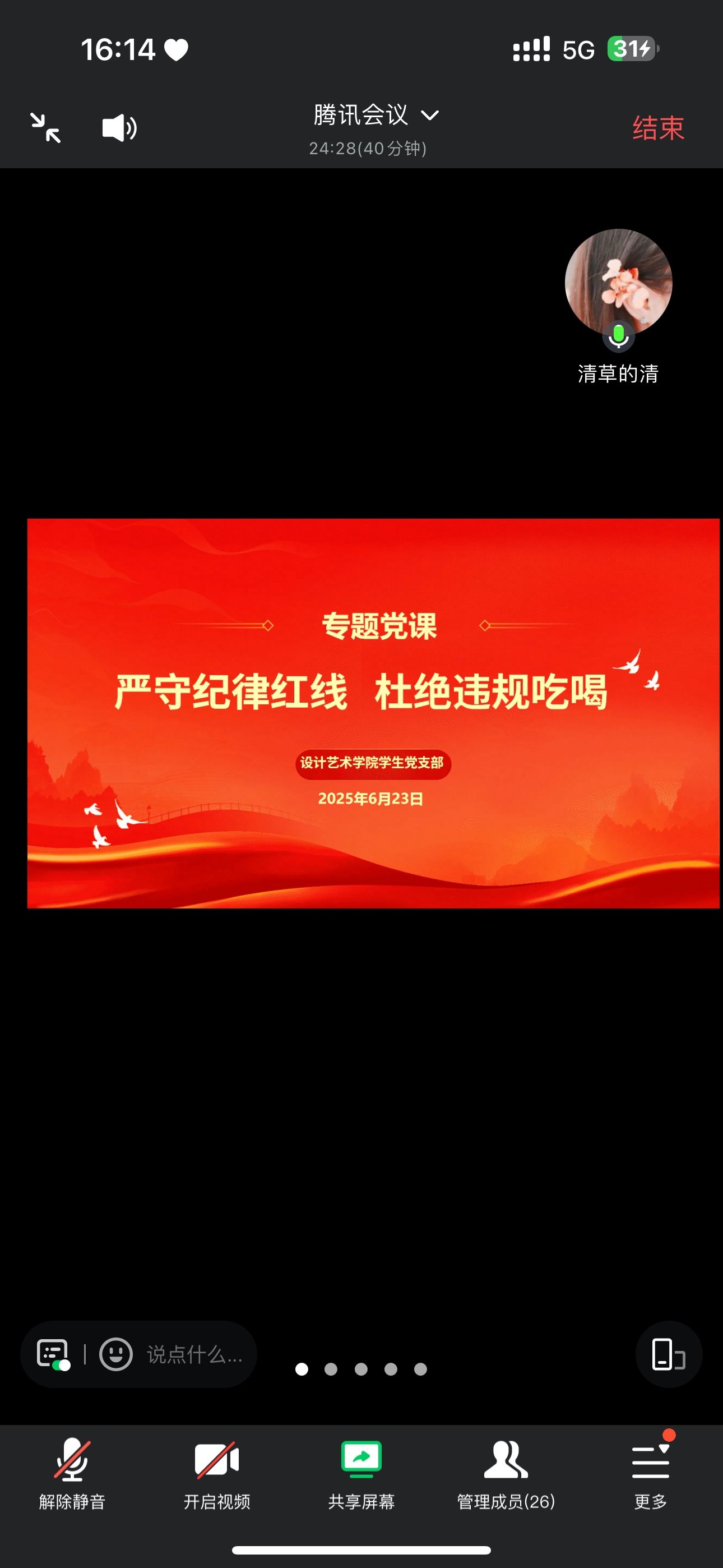 她强调,员工党员要时刻筑牢思想防线,深刻认识到违规吃喝不仅是不良作风,更是纪律红线,从思想深处抵制享乐主义和奢靡之风,牢记党员身份,保持清醒头脑,不为诱惑所动。要严守党纪党规,不参加可能影响公正执行员工管理工作的宴请,不接受管理服务对象的吃请,以实际行动维护党的纪律尊严。要发挥模范作用,带头倡导节俭,抵制不良风气,积极向身边同学宣传党的纪律要求,营造风清气正的校园氛围,以优良党风带动班风、学风建设。