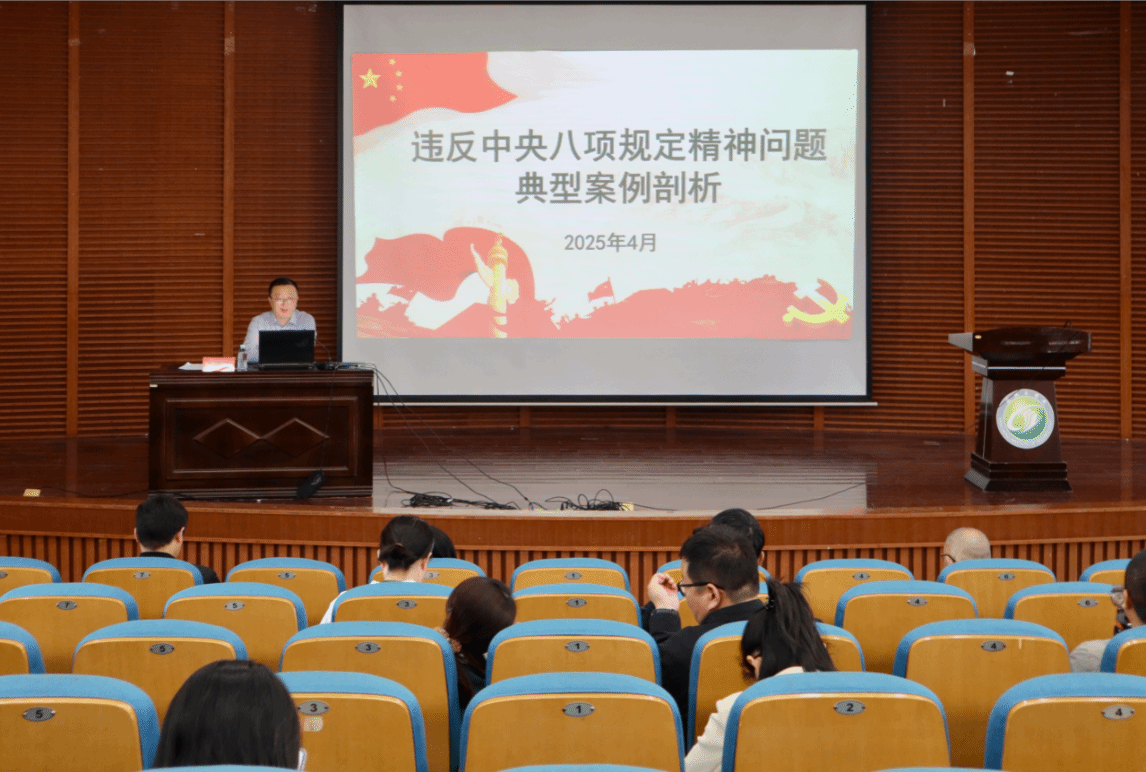 谷文华以“违反中央八项规定精神问题典型案例剖析”为题,详细介绍了中央八项规定及其实施细则的精神实质,分类列举违反中央八项规定精神的问题表现,并结合具体案例讲解了违反中央八项规定精神问题的政策及量纪尺度。他深入剖析了作风建设的内在要求和贯彻落实的着力点,为全院教职工深入贯彻中央八项规定精神,校准思想坐标、把握行动方向,实现以“学”筑基、以“查”破题、以“改”增效,提供了重要的理论指导和现实参考。