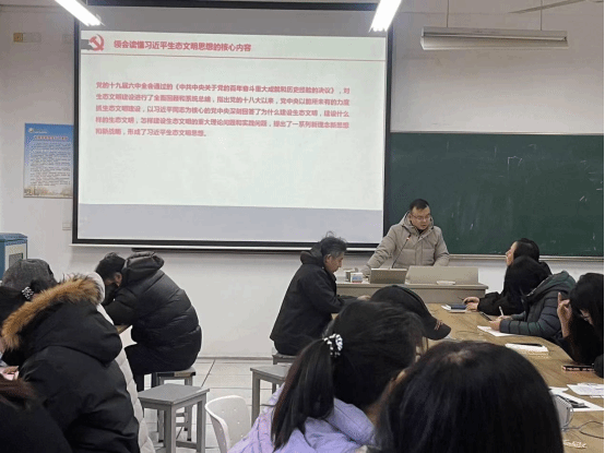 党总支副书记杨士卿以“数字”这一视角为切入点,从把握“一个”基本定性、全面理解“二重”属性、准确把握“三种”态度、扎实推进“四项”任务、健全“五个”基本体系等五个方面解读了习近平生态文明思想的核心内容。