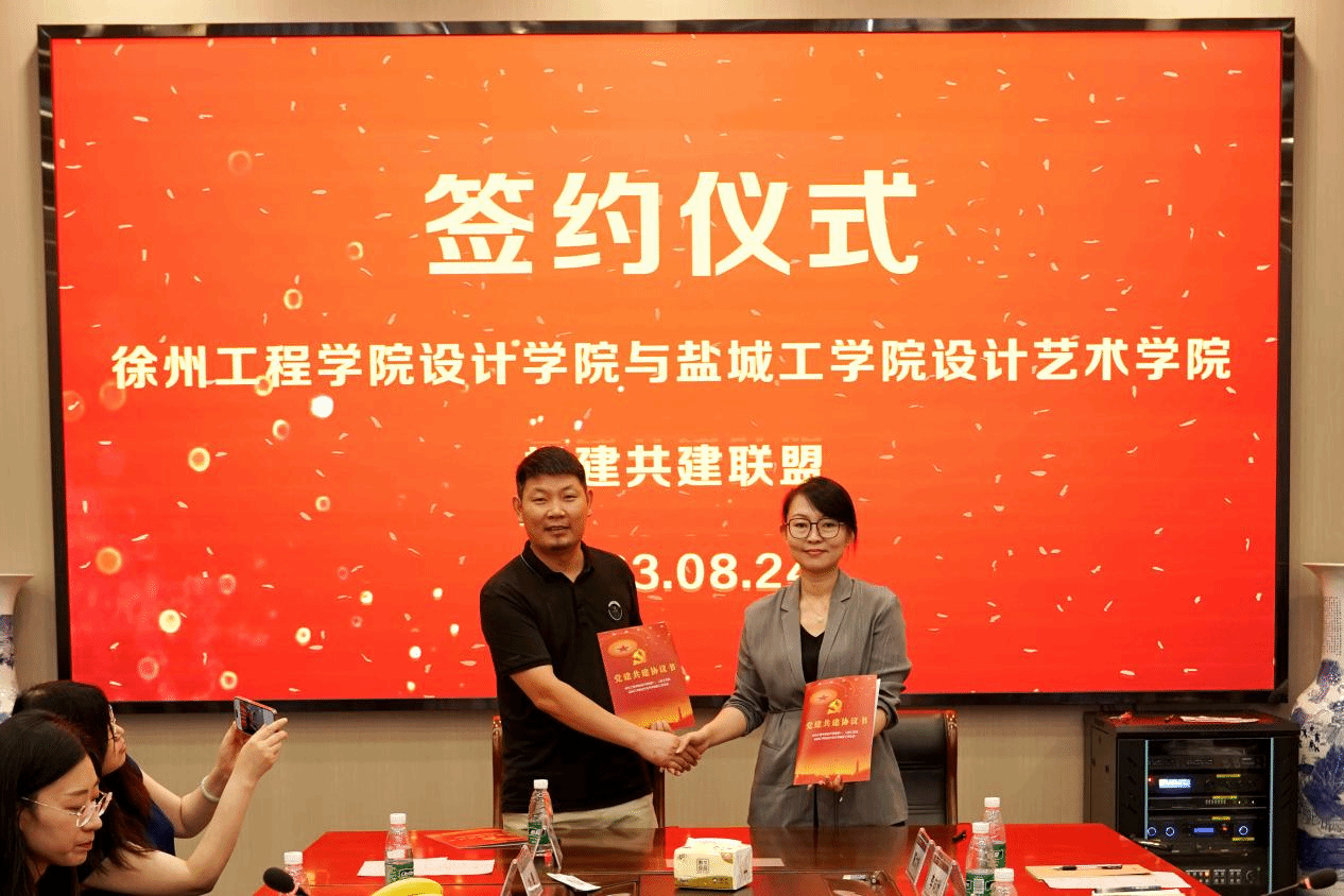 在交流和共建环节,徐州工程公司设计公司经理崔浩向大家全面介绍了公司的办学历程、人才培养、学科发展、专业建设、人才招聘等工作。他表示,希望在党建共建协议框架下,两个公司进一步落实双方党建共建、业务共建、人才共建等措施,以更高视野、更大格局、更高标准推动事业高质量发展。公司党总支书记胡凌霞表示要深入加强与兄弟院校在新型功能党支部建设工作方面的合作交流,广泛建立联系,增进了解,汲取宝贵经验,推动双方高质量工作的发展。两院教师就设计类专业人才培养服务区域产业链、市场项目融入课程建设、设计赋能乡村振兴、艺术乡建、非遗传承与数字化设计开展了热烈交流。