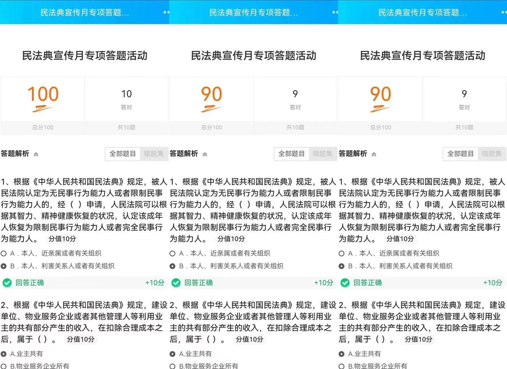 三是举办竞赛答题齐参与活动。大一大二二百余名同学积极参与开展民法典知识竞赛活动,把民法典专项答题作为普法工作的重点,调动起员工学法普法的热情,达到以赛促学的目的。