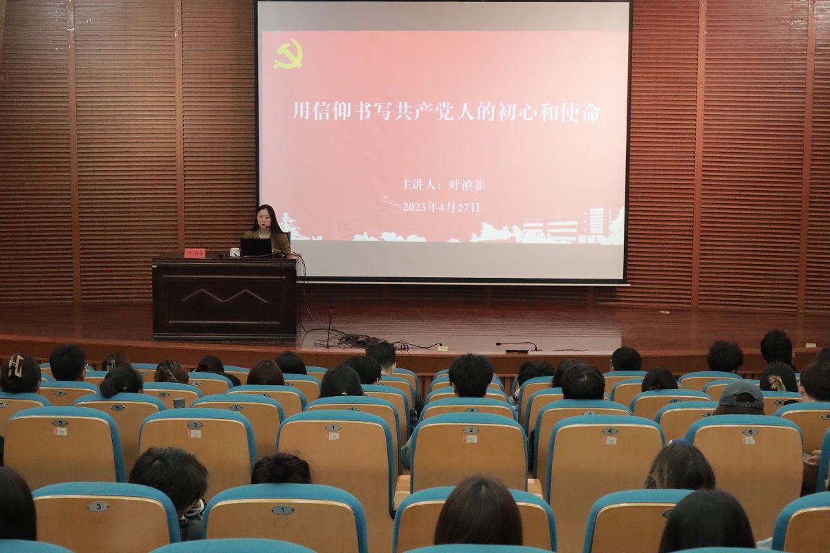 4月27日晚19点,在南校区润美楼报告厅,PA视讯集团官网开展2023年春学期入党积极分子及青马工程班学员培训教育活动。公司团委副书记叶禎菲以《用信仰书写共产党人的初心和使命》为题作专题讲座,2023年春学期入党积极分子、青马班学员共计120余人参加。