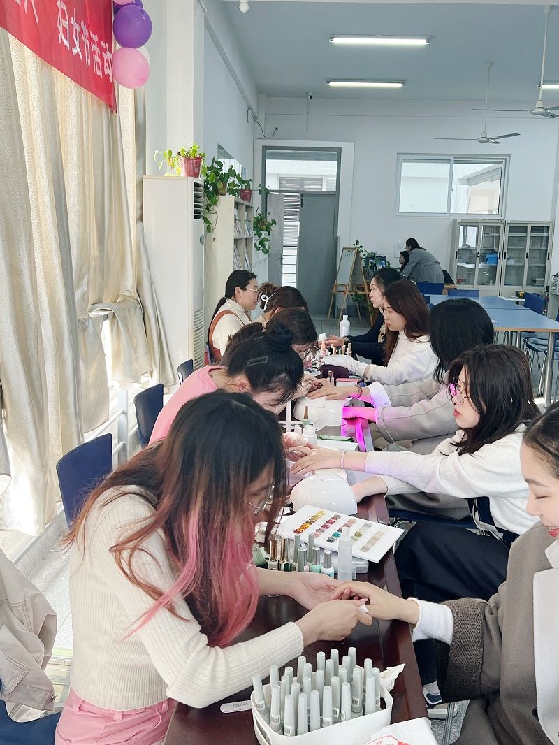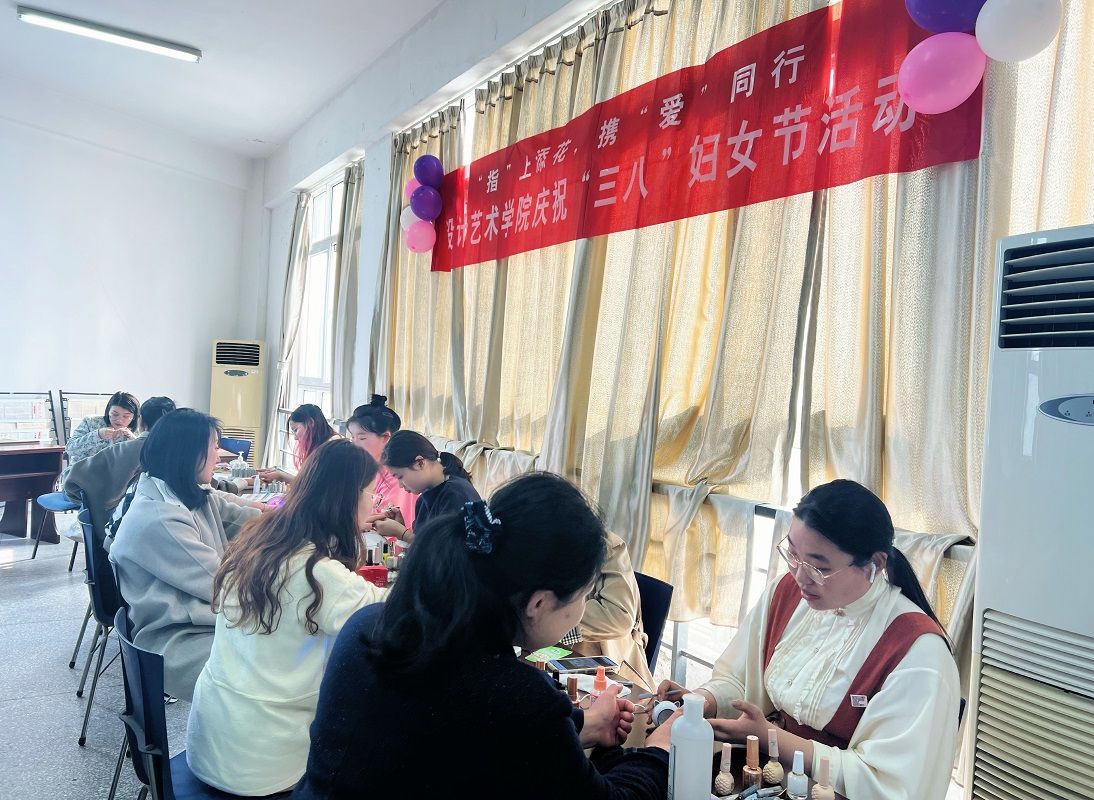 3月8日下午,在润美楼二楼图书阅览室,PA视讯集团官网开展“‘指’上添花,携‘爱’同行”美甲志愿服务活动。公司20余名女教职工参加,公司党总支书记胡凌霞向各位女老师送上节日的祝福,并对公司荣获校年度“巾帼文明示范岗”“巾帼建功标兵”的组织和个人表示祝贺。