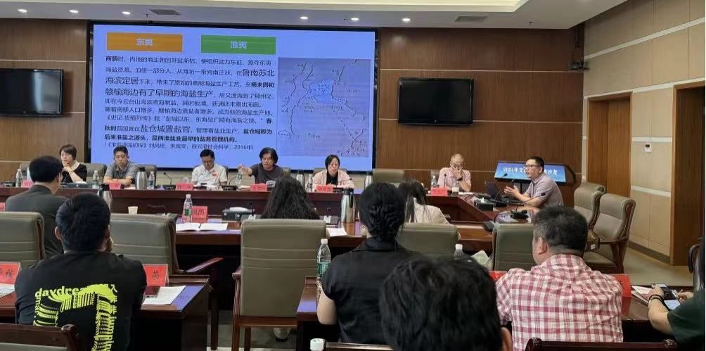 戚凤国副教授作了《两淮古法制盐工艺美学研究——商周制盐器》专题。他指出两淮古法制盐工艺美学研究对完善当代美学研究体系结构,赓续城市文脉,促进文化产业发展具有重要意义。从三个方面阐述了两淮盐业研究的重要性,一是其在国家财政中的重要地位;二是其对江淮区域社会发展产生了重要影响;三是留有丰富的两淮盐业遗存。