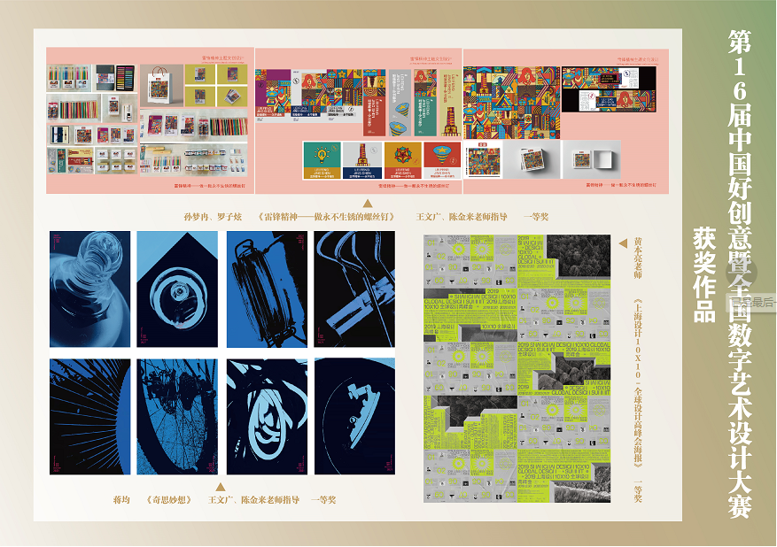 第十六届中国好创意大赛暨全国数字艺术设计大赛由中国电子视像行业协会主办,中国电子视像行业协会数字影像创意委员会承办,大赛共吸引来自全国1472所院校的13万余件作品报名参赛。本届大赛共分为省级赛与全国赛两个赛段,经过省级选拔,PA视讯共有10组作品入围全国赛,并有10组作品获得省级奖项。终评环节,王文广、陈金来老师指导员工蒋鋆创作的作品《奇思妙想》,孙梦冉、罗子炫创作的作品《雷锋精神-做一颗永不生锈的螺丝钉》获得视觉传达员工组全国一等奖;黄本亮老师创作的作品《上海设计10X10-全球设计高峰会海报》获得视觉传达教师组一等奖;王瑾老师创作的作品《墨子矩阵-面向乡村产业再造的绿色智造工厂》《共享垃圾桶》等5件作品分别获得产品造型组2个二等奖、3个三等奖。这是公司在教育部认定的57项学科竞赛中获奖规格最高、获奖作品最多的一次比赛。