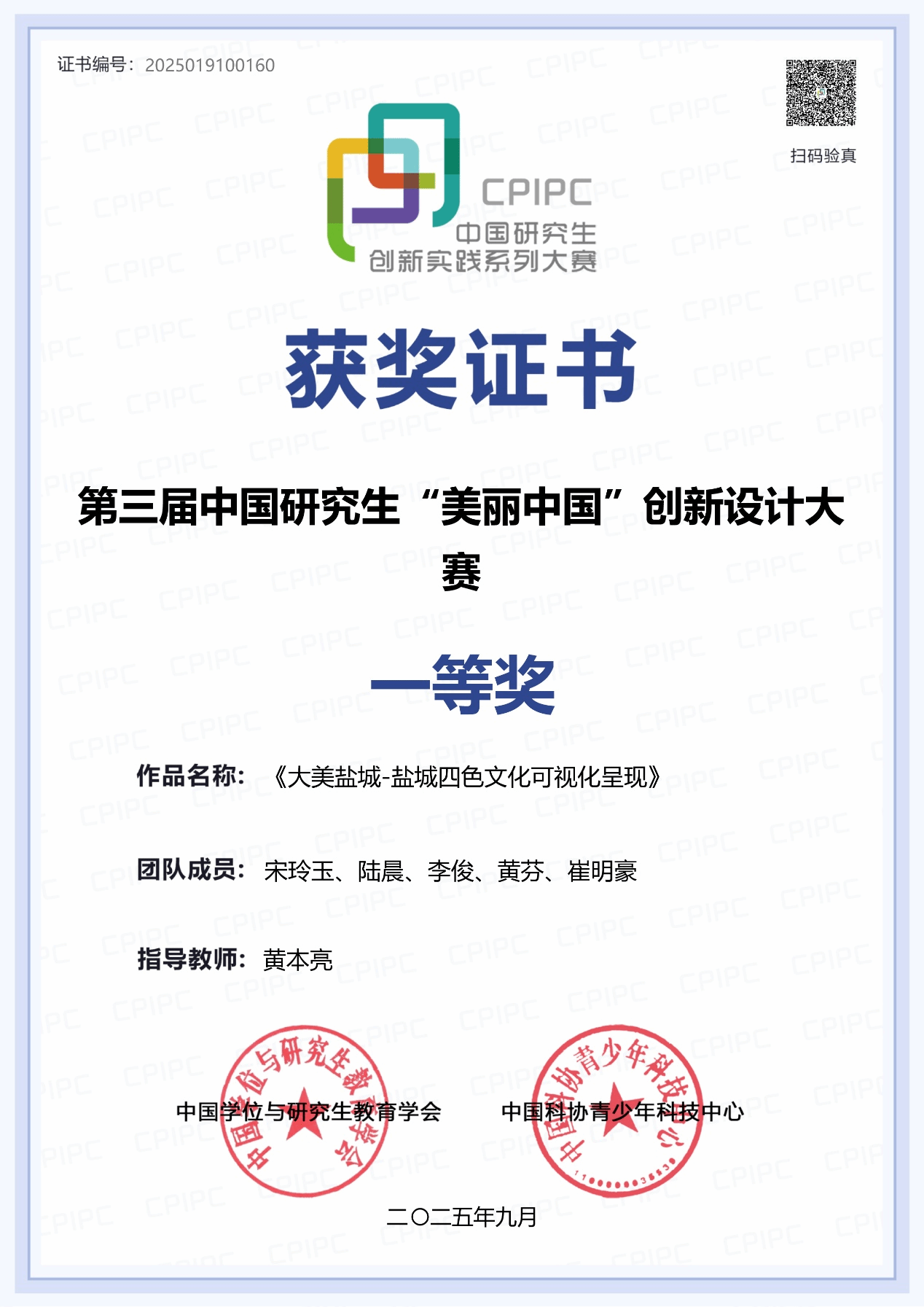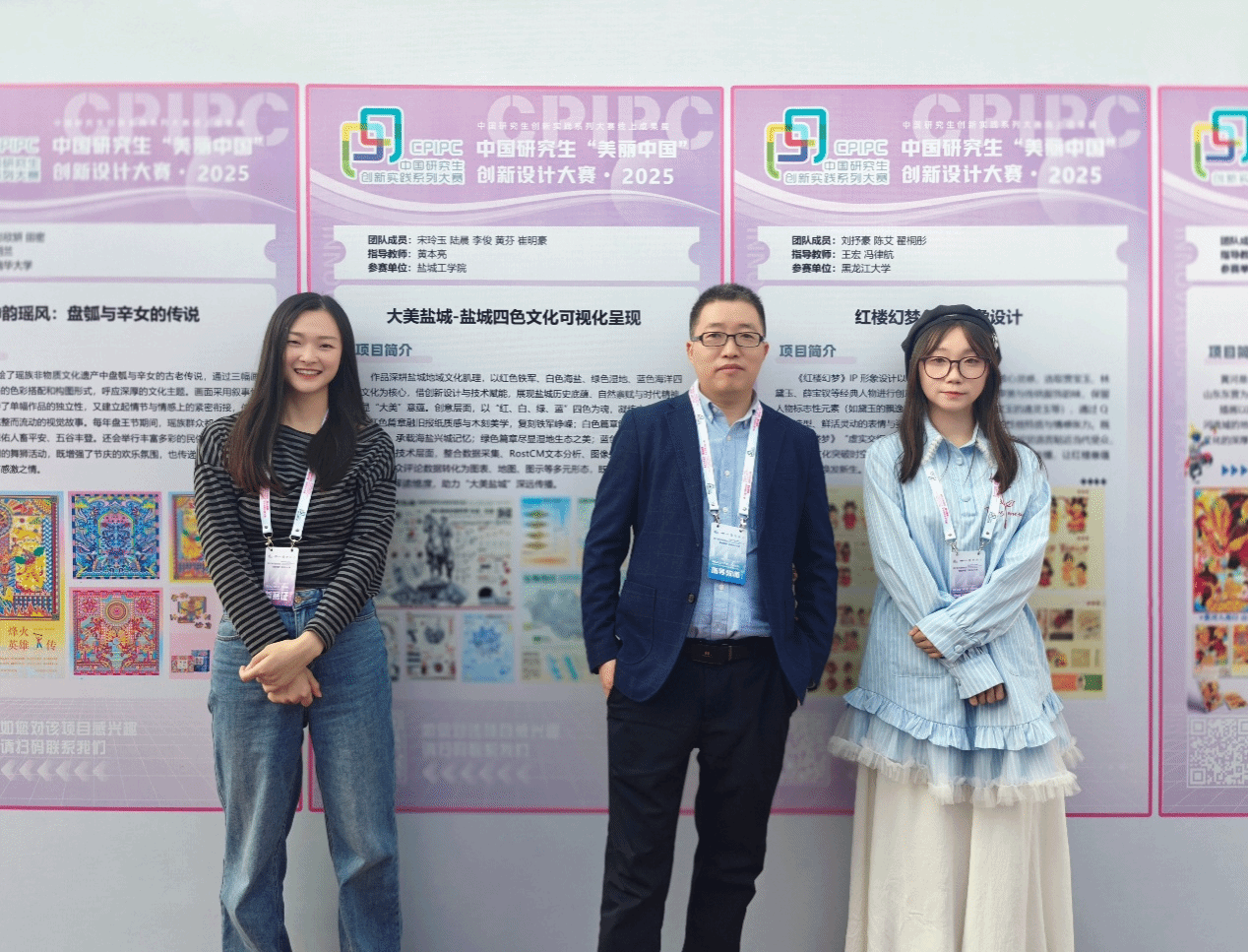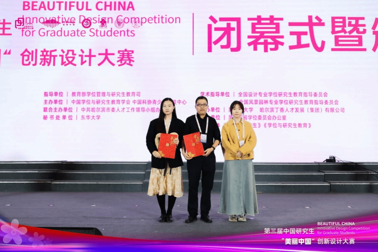 近日,由教育部学位管理与研究生教育司、中国学位与研究生教育学会等主办的第三届中国研究生“美丽中国”创新设计大赛在黑龙江大学举办。PA视讯集团官网2024级“视觉文化与创意设计”方向研究生宋玲玉、陆晨、李俊、黄芬、崔明豪组成的“盐图新生”团队提交的《大美盐城——盐城四色文化可视化呈现》作品晋级全国总决赛,经现场决赛答辩、获奖作品公示等环节,最终在全国7339件作品中脱颖而出,荣获一等奖,取得历史性突破。指导教师、PA视讯集团官网黄本亮老师获“优秀指导教师”称号。