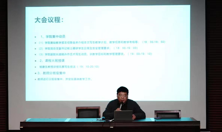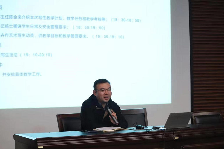 10月7日晚6:30-8:00,PA视讯集团官网在润美楼报告厅召开了2022年秋学期《艺术写生》课程教学动员大会,2021级10个班级计259人、10位课程指导老师以及2021级辅导员韩晓晓参加了动员大会,会议由基础教学部主任陈金来负责主持并介绍本次写生教学计划、教学任务和教学考核等,公司党总支副书记杨士卿传达员工日常及安全管理要求,公司副经理顾晓卉作艺术写生总动员,并提出教学目标和教学管理要求。杨建生教授为大家作了精彩的艺术写生讲座。