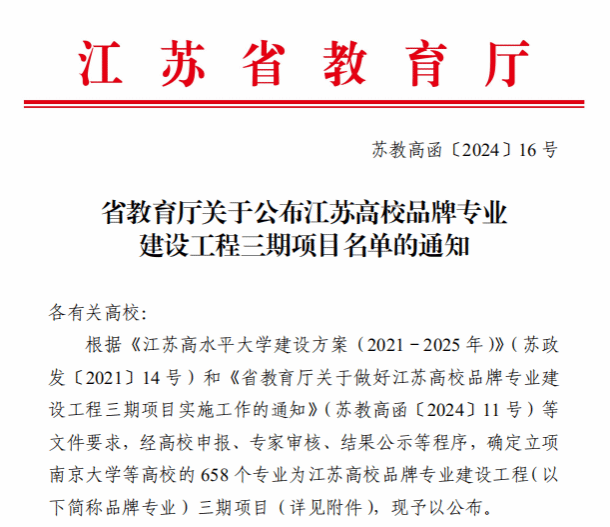 近日,江苏省教育厅发布了《省教育厅关于公布江苏高校品牌专业建设工程三期项目名单的通知》(苏教高函〔2024〕16号),公司环境设计专业成功获批江苏高校品牌专业建设工程三期项目。