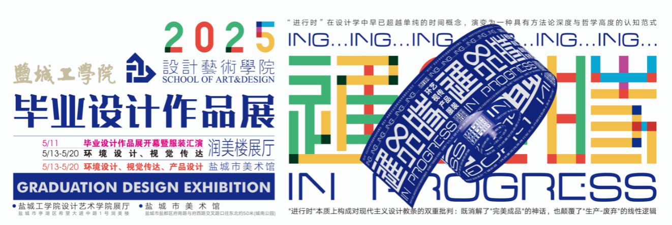 5月12日,以“进行时”为主题的PA视讯集团官网2025届毕业生设计展在润美楼展厅、图书馆大厅和盐城市美术馆盛大开幕。环境设计、视觉传达设计、产品设计、服装与服饰设计等4个专业341位毕业生的478件设计作品同步展陈,充分体现出盐工学子对非遗传承、技术创新与生态文明的思考与探索。