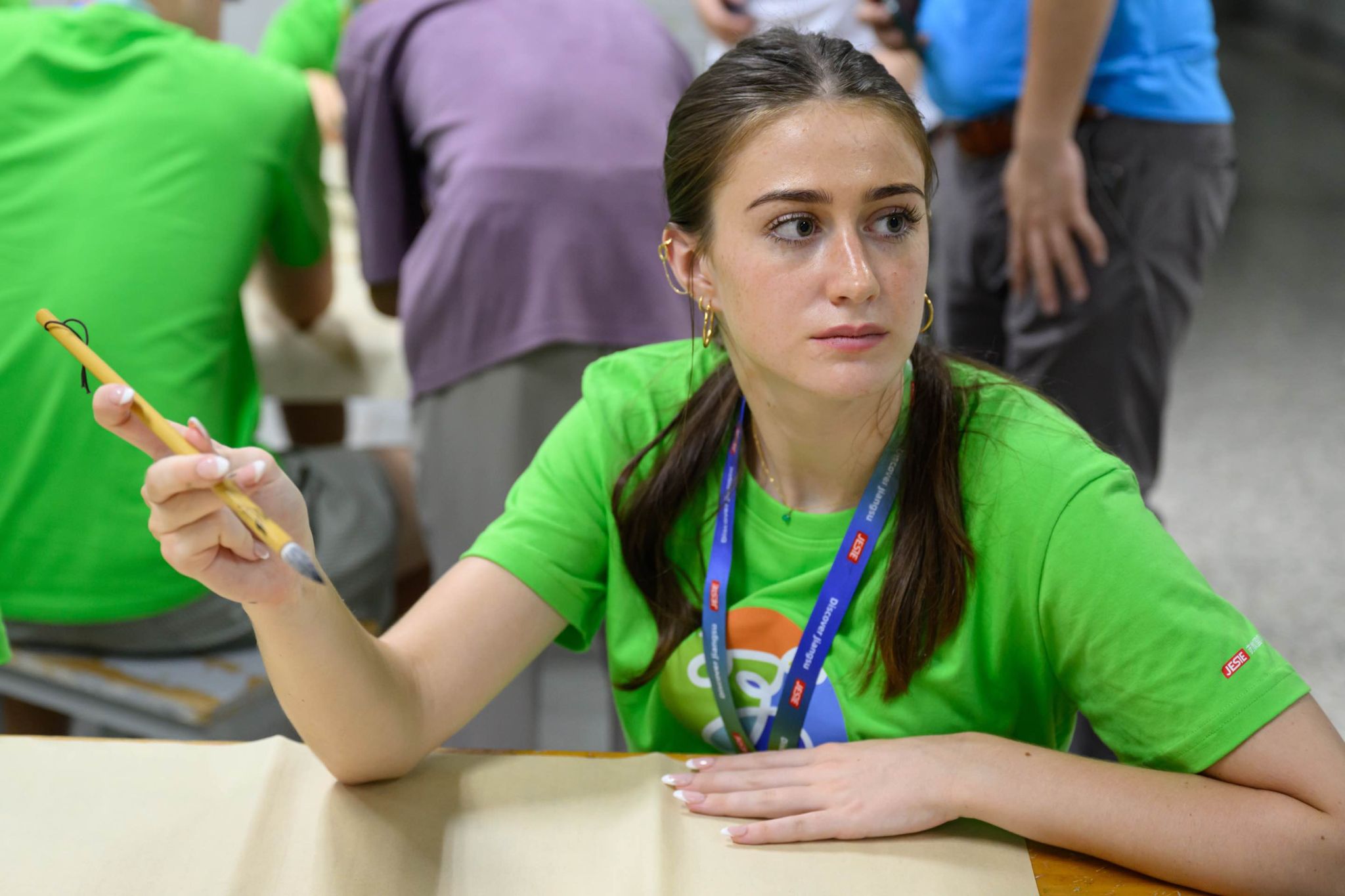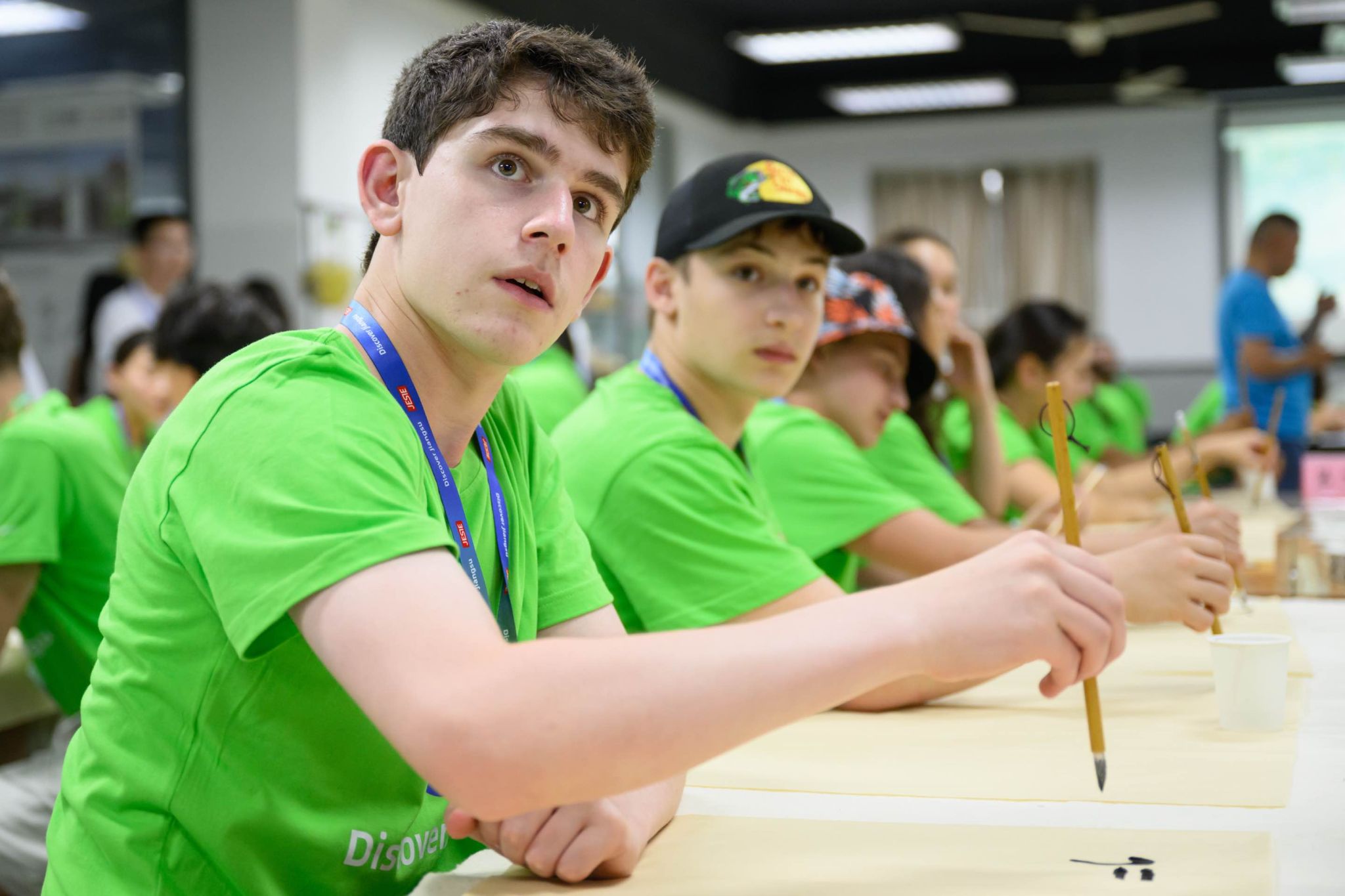 6月20日,PA视讯集团官网迎来了一批青春洋溢的海外访客——来自美国宾夕法尼亚州的“锦绣江苏•美国青少年交流营”高中生。在墨香与漆彩交织的课堂里,他们执起毛笔体验书法之韵,亲手制作流光溢彩的非遗漆扇,开启了一场沉浸式的中国传统文化探索之旅。