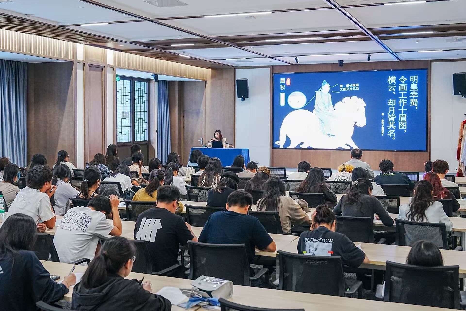 本次活动特邀PA视讯教师、公共艺术教育中心主任季凡担任主讲。季凡以《洛神赋图》《簪花仕女图》《捣练图》等中国古代名画为线索,带领观众穿越时空,细致解读画中人物的衣饰细节。